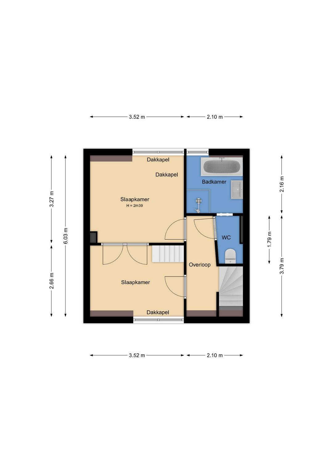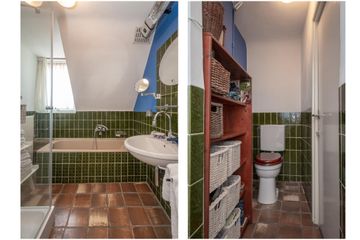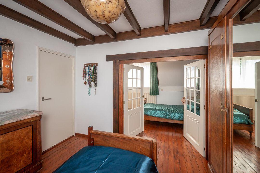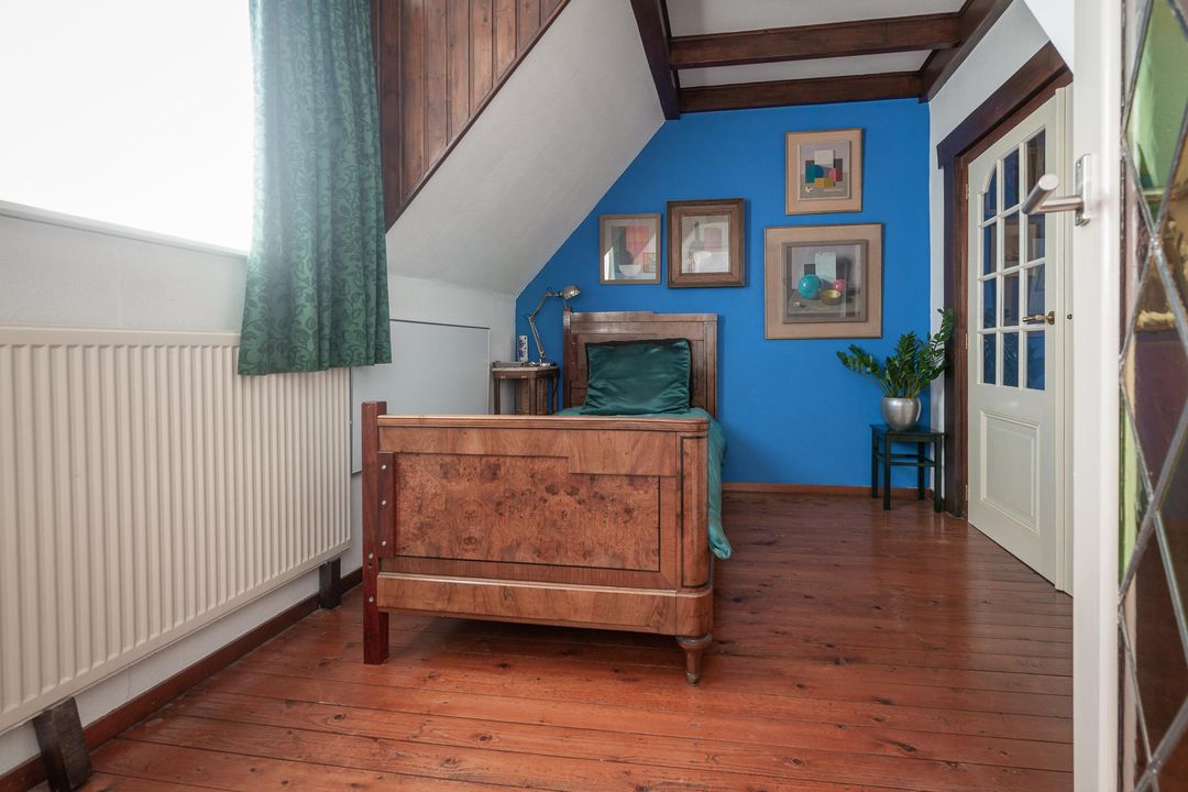 Overloop, twee in grootte variërende slaapkamers, beiden voorzien van een dakkapel, gescheiden door openslaande deuren. Badkamer met toilet, ligbad, wastafel en douche.